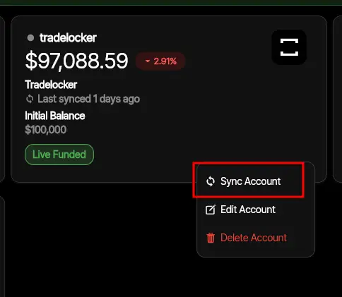 Find the account you want to sync, press ≡ on the right bottom corner of the account card, and press Sync Account.